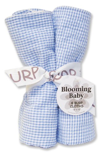 Classic Gingham Seersucker Blue 4 pack burp cloth set. Blue gingham seersucker print on one side, white absorbent terry on the other. Size 13″ x 10″.