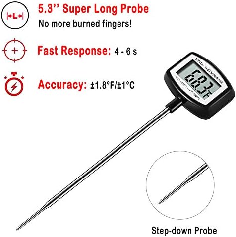 ★ NO MORE BURNING: 5.3 inches super long probe keeps you from burning your hands while measuring.