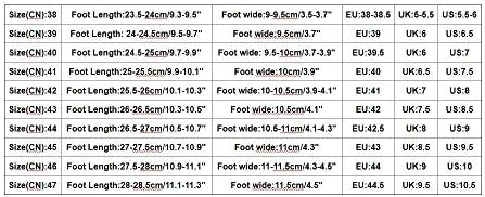 Size(CN):41 Foot Length:25.0-25.5cm/9.9-10.1″ Foot wide:10cm/3.9″ US:8