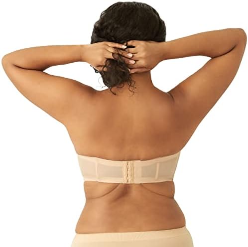 Silicone strip along the top and bottom edge helps hold this strapless underwire bra in place