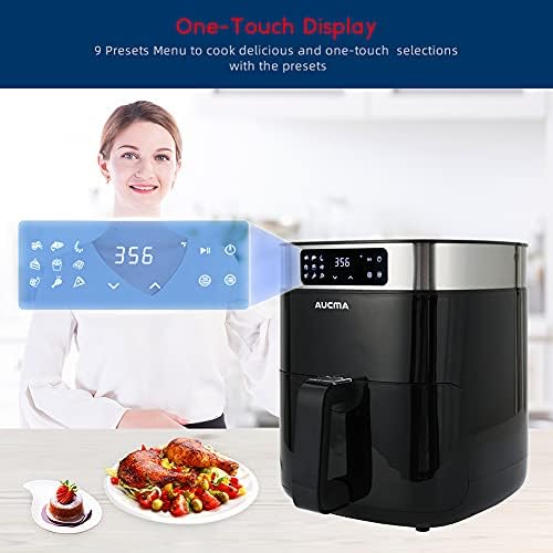 ♨HEALTY COOK AND LESS OIL – Aucma Air Fryer cooks by using innovatived dynamic airflow technology to produce 360°circulating hot air around the food. You can enjoy your favorite fried foods the same delicous as deep frying but with 85% less oil.