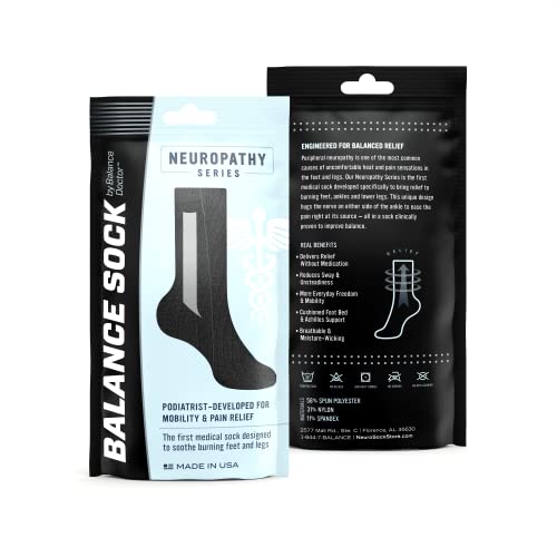 Peripheral neuropathy is one of the most common causes of uncomfortable heat and pain sensations in the feet and legs. Our Neuropathy Series is the first medical sock developed specifically to soothe burning feet, ankles and lower legs. This unique design hugs the nerve on either side of the ankle to ease the pain right at its source — all in a sock scientifically proven to improve balance. LESS PAIN, NATURALLY Delivers Relief Without Medication Reduces Sway & Unsteadiness More Everyday Freedom & Mobility Cushioned Foot Bed & Achilles Support Breathable & Moisture-Wicking