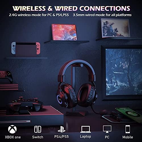 ✅【Multi-console Compatibility】EasySMX Wireless Gaming Headset with microphone has a 3.5mm audio cable, through which you can connect mobile devices, Switch and 🚩𝙓𝙗𝙤𝙭 𝙤𝙣𝙚(𝙒𝙞𝙧𝙚𝙙 𝙘𝙤𝙣𝙣𝙚𝙘𝙩𝙞𝙤𝙣) .(Not included 𝙓𝙗𝙤𝙭 adapter). Lossless wireless connectivity via USB dongle for consoles (PS5, PS4, PlayStation 4, PlayStation 5) and PCs.