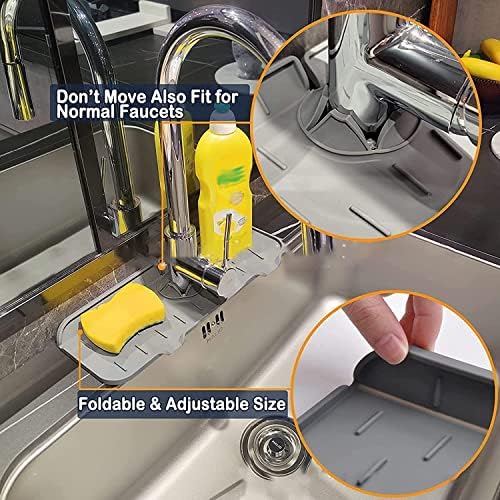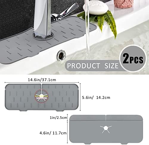 [High Quality]: The Silicone Kitchen Sink Faucet Mat is made of food-grade silicone material. They are reusable and durable, easy to clean, never gets soggy, and can be used for a long time, much better than traditional textile materials. The size is 14.6 x 5.5 inches with 2.5 inches adjustable round hole in the middle.