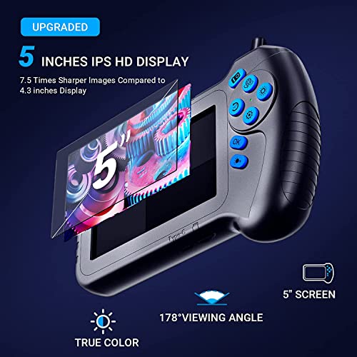 ⭐【 Newest 5″ IPS SCREEN 】— Compared with 4.3″ screen, NIDAGE inspection camera can display more natural and brighter colors, offer 7.5 times clearer image & video. You can see the screen clearly even working under the blazing sun. The IPS screen is more power efficient, the built-in battery offers a working time of up to 5-6 hours.