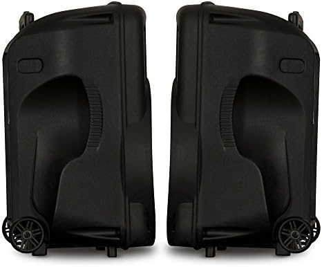 HIGHEST QUALITY – Deluxe accordion edge 15″ woofer and 2″ tweeter, 20Hz-20kHz, 98dB, built In rechargeable battery, rugged cabinet with rear wheels, handles, adjustable stand pole mount and is (H x L x W) 24″ x 16″ x 13.75″, adjustable steel speaker stand