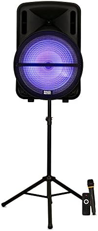 BATTERY POWERED BLUETOOTH SPEAKER – Stream music from your phone to the built in Bluetooth receiver, integrated battery powered amp with 600 watts system power, multi-colored LED woofer flashing light display with ON/OFF switch