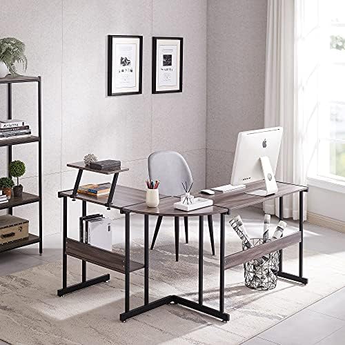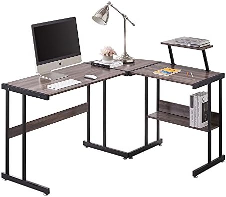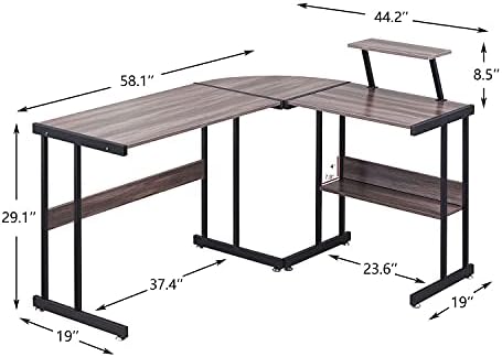 Reversible L-Shaped Computer Desk: 58.1″ x 44.2″ x 29.1″ dimensions can suit your home or office, can be installed with the longer board placed on either side for more flexible use. It’s also equipped with a practical 7.9” x 15.8” monitor stand, The removable shelf can be installed either on the left or right, large enough for a monitor.