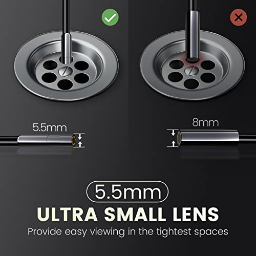 16.5ft semi-rigid cable is flexible to shape for your needs, combined with 6 adjustable LED lights on the camera head provides crystal clear image for your freely operation even in dark environments.