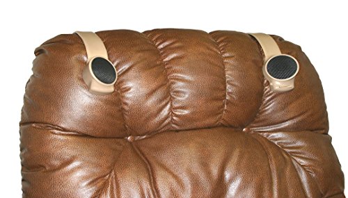 AVAILABLE IN GRAY, BLACK, BROWN, AND TAN. PLEASE CONTACT US WITH YOUR COLOR PREFERENCE OR YOUR PRODUCT WILL NOT BE SHIPPED. Audio Fox is a new and innovative patented design in wireless TV speakers, and is made in America. It is for those who want personal volume control without the discomfort and isolation of headphones. Thin adjustable steel straps enclosed in vinyl are used to hold the unit in place on the back of your chair, couch, or bed and keep the speakers the desired distance from your ears. It uses broad spectrum hopping technology between 30 channels to find the clearest 2.4Ghz frequency available, and does not require line-of-sight like many other products on the market which use infra-red technology. It is designed for those with loss of hearing, those with differing volume preferences, gamers, for use while others are sleeping, as well as many other uses. Simply plug the transmitter into your television’s audio out port and a 110V power outlet, power up your receiver, and you’ve got personal volume control while others can listen at there own desired level. It is compatible with any television audio output. With a 30 day money back guarantee and a one year warranty, you can’t go wrong!