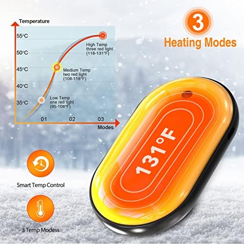 Smart Safe Protection – Smart temp control system equipped with an integrated temperature sensor will switch off automatically when the handwarmer temperature exceeds 131°F(55°C). The UL certified li-ion batteries and high-precision chipset to keep the electric hand warmers away from over-heating, over-charging and short circuit, etc.