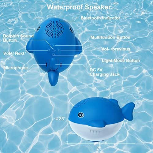 Wide Applications for The Pool Bluetooth Speaker: You will love this cute Bluetooth speaker when you first see it. Floating speaker with lights is perfect for all sorts of outdoor and indoor activities: pool,hot tub,games, camping, beach. When you swim, the cute dolphin with colorful lights will accompany you and play your favorite tunes – what a great experience! The waterproof floating speaker is also the a perfect gift for girls and decoration for Birthday, Christmas, Halloween – any time!