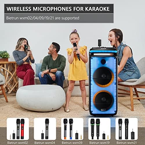 Full Panel LED DJ Lights:●Bietrun YX02 has 6 different lighting effects (Red flame, Colorful meteor, Spectrum turning, dynamic colorful spectrum-from bottom to top/from edge to center/S shaped).●The default is red flame light, and you can short press the LED MODE button to adjust your favorite lighting effect.●The karaoke machine built-in 139 lamps, which allow colors of each lighting effect change with different melody and tunes, with a captivating and lasting light show.