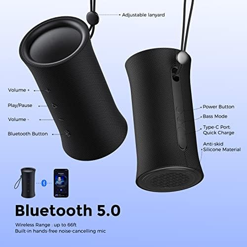 🎵POWERFUL WATERPROOF:IPX7 protection safeguards against rain, dust, snow, and spills. Get incredible sound at home, in the yard, hiking or camping,or anywhere else imaginable.