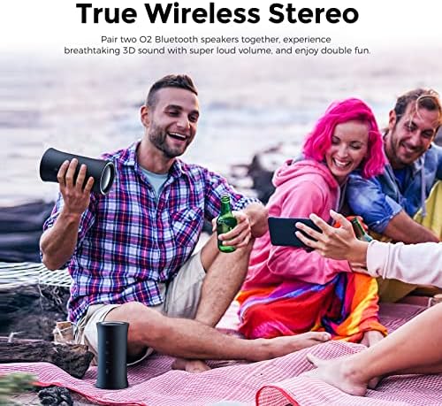 🎵TRUE WIRELESS STEREO PAIRING:The lastest TWS technology offered allows you to connect two O2 Pro Bluetooth speakers simultaneously with your phone, delivers Axloie signature sound in every direction with its ingenious 360 degree speaker Array.
