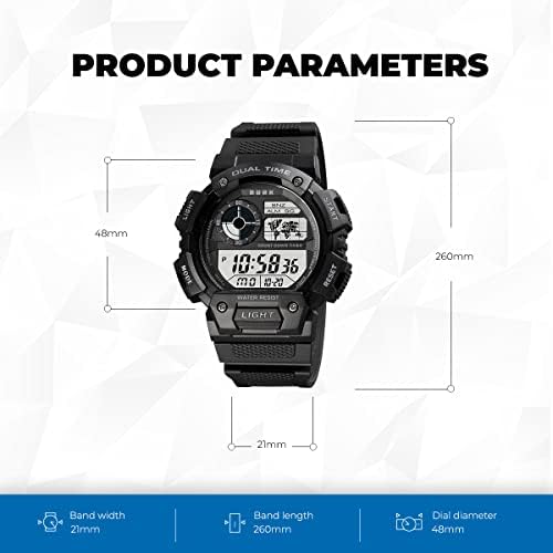 ★ MULTI-FUNCTIONAL: It is a series of multi-function watches that can be used for many daily occasions, supporting the powerful functions of an outdoor watch, such as 2time, stopwatch, week, alarm, date, 12/24 Hour, etc.