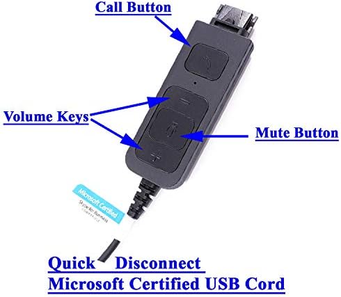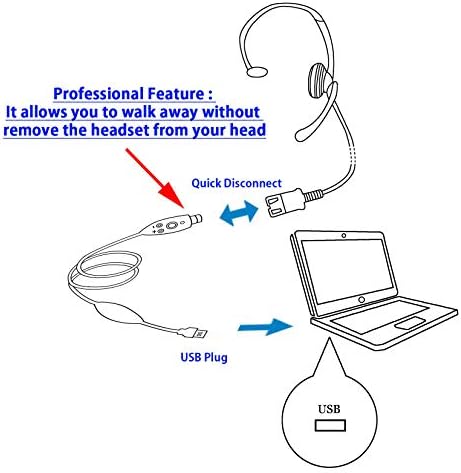 QUICK DISCONNECT computer usb headset (Cord length 3ft) + PC USB Adapter (Stretched lenght is over 9 ft, In-line control). QUICK DISCONNECT is an Essential feature for Professional headset for business headset. It allows you to walk away without remove the usb headset call center from your head.