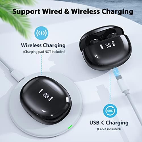 【Wireless Charging & Digital Battery Display】Apart from charging with the included Type-C cable, you could also simply place D7 wireless earbuds on a wireless charging pad (NOT included) to have an easier charging experience. Besides, built-in dual LED power display allows you to grasp the remaining power of the charging case and the charging status of the earbuds in real-time. Thus you could always charge them in time via either way when battery is low.
