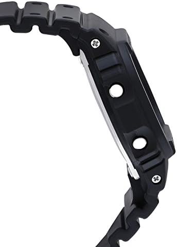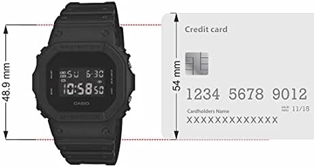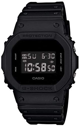 Digital dial. Black resin case with a black resin band. Quartz movement. 200 meters / 660 feet water resistance. Fixed bezel. Solid caseback. Buckle clasp. Case size 48.9 x 42.8 mm x 13.4 mm. Casio DW-5600BB-1DR G-Shock Watch.