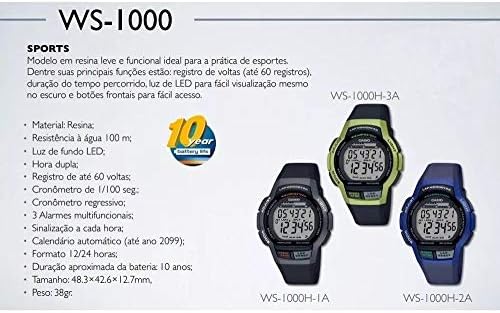 Model: WS-1000H, Type: Wristwatch, Case Size: 48,3mm x 42,6mm x 12,7mm