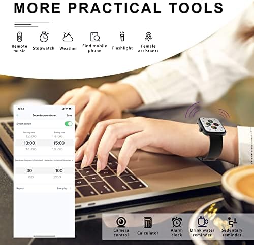 ✔【11 Sports Modes & More Practical Tools】Our fitness tracker has 11 Sport Modes, including running, cycling, skipping rope, gym, yoga, basketball, football etc. Newly added GPS running tracks “WearPro”APP can record your exercise data to help you to do scientific fitness. Smart watch has more practical tools, such as camera control, calculator,alarm clock, drink water reminder, sedentary reminder, remote music, weather, find mobile phone, voice assistant, female assistants and so on.