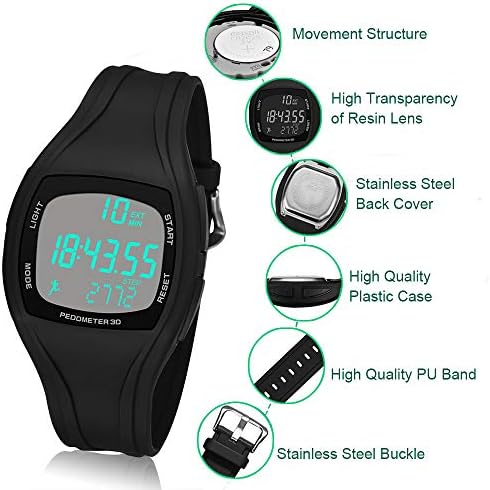Digital Watch (men) Band Width: 0.94 inch / 2.4 cmWrist Watch (for men) Band Length: 9.84 inch / 25 cmFitness Watch Dial Case Diameter: 1.61 inch / 4.1 cmStep Tracker Watch Dial Case Thickness: 0.63 inch / 1.6 cmSport Watch Weight: 1.48 oz / 42 g