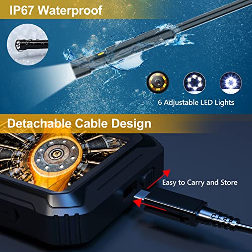 【5.0 inch IPS Screen Endoscope】IPS HD Endoscope screen, makes inspection quicker, easier take pictures & record video: 1.Better horizontal conversion tech, anti-blur and ensure grabs ultra-clear picture; 2. Ultra wide-angle, outputs two times more viewing field; 3. Color flipping and brightness conversion, to see the high-quality image with vivid colors, saturated and natural from any angle; 4.Thinner display panel, enhancing visualization.