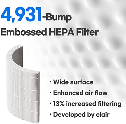 ENHANCED H13 TRUE HEPA FILTER: Clair developed Embossed true H13 HEPA filter has more surface area for capturing pollutants than traditional HEPA by up to 13%. Activated carbon filter removes the unpleasant odors from pets, smoking and cooking. Washable pre-filter extends the life of the HEPA filter by capturing large pollutants such as pet hair and large dusts