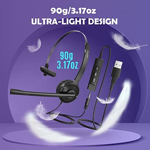 330° rotatable microphone&Noise Cancellation–USB noise cancelling headset with microphone comes with a 330° rotatable microphone, and a noise-canceling feature that guarantees SUPERIOR CALL CLARITY, no matter where you are.Retractable Headband&Soft Memory-Protein Ear Cushion–The padded ear cups and the headband is adjustable so it fits your head perfectly. Lightweight at just 3.17oz/90g and you don’t feel burdened.Wide Compatibility&Plug and Play–USB headset with microphone for PC comes with a 3.5mm plug and USB port, USB headset with microphone noise cancelling can easily connect to your PC, smartphone, computer, laptop, or Xbox One and more. You can use the headset to enjoy Skype chat and listen to music anywhere.