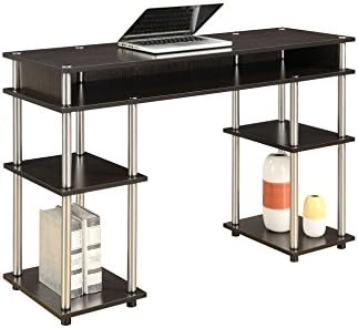 Looking for a place to work or study with a quick and easy setup? The Designs2Go No Tools Student Desk with Shelves by Convenience Concepts is perfect for you! This stylish desk features plenty of storage space with a unique assembly that requires no tools. Made to be sturdy with stainless-steel poles and a rich finish, this unit is built to last. Great for an office or dorm, this desk is not only for a student but anyone wanting to add simplicity to their workload. Add coordinating pieces from Convenience Concepts, each sold separately.