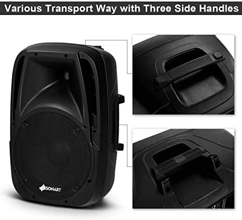 Easy Mobility and Easy Set-up: Clever enclosure design incorporates three handles that allow for easy speaker portability. Complete DJ party speaker system set ready to set-up right out of the box. You can either set this speaker at ground or set with stand. There are two tripod stands featuring three levels adjustable height form 3.5ft to 4.5ft to make sure excellent sound more spread.