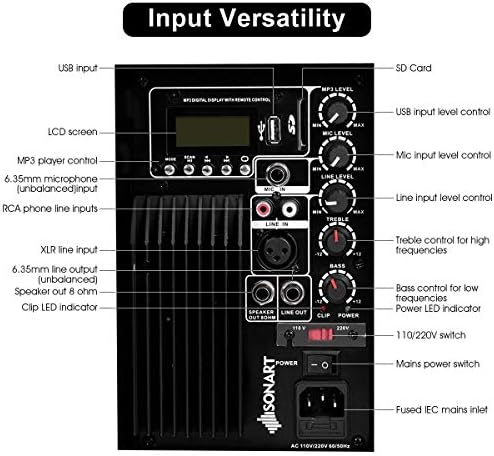 All-in-one Speaker System: This PA system features wireless Bluetooth, USB input, SD card input, FM Radio, line input(RCA input), mic input, allowing you to enjoy the versatility of this unit. The active speaker has a built-in amplifier which magnifies the audio signal. Its wide frequency response(from 65-18KHz) makes it suitable for amplifying any type of audio. Built-in Bluetooth is great option for playing your stored music on your phone or other devices. And there is also a built-in equalize
