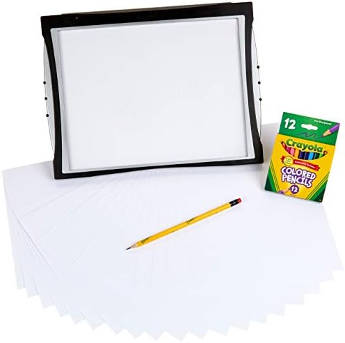 CRAYOLA LIGHT UP TRACING PAD: Features a Light Up Tracing Pad with Eye-Soft Technology and White LEDS, 3-Mode Switch (Off/On/Auto), 20 Tracing Paper Sheets, 12 Short Colored Pencils, and 1 Number 2 Pencil (3 AA Batteries Required. Sold Separately)