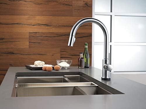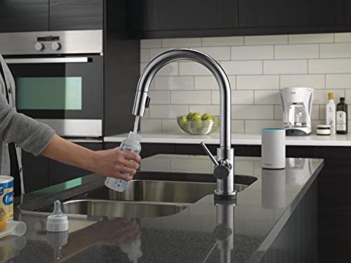 DELTA VoiceIQ Technology pairs with your connected home device to give you exactly the amount of water you need with features like metered dispensing and custom container commands. Simply ask your faucet to dispense one cup, six ounces, a gallon or just about any other amount you could need. Custom container commands make everyday tasks easier, like filling a coffee pot or dog bowl, while thoughtful features like water warm-up and voice-activated on/off lend a hand when yours are full. Take command of your kitchen with a VoiceIQ Faucet: a revolutionary kitchen faucet that thinks on demand. This Trinsic pull-down kitchen faucet is packed with functional features, like DELTA Touch2O Technology. A simple touch anywhere on the spout or handle with your wrist or forearm activates the flow of water at the temperature where your handle is set. The DELTA TempSense LED light changes color to alert you to the water’s temperature and eliminate any possible surprises or discomfort. DELTA MagnaTite Docking uses a powerful integrated magnet to pull your faucet spray wand precisely into place and hold it there so it stays docked when not in use. DELTA faucets with DIAMOND Seal Technology perform like new for life with a patented design which reduces leak points, is less hassle to install and lasts twice as long as the industry standard. Kitchen faucets with Touch-Clean Spray Holes allow you to easily wipe away calcium and lime build-up with the touch of a finger.