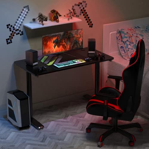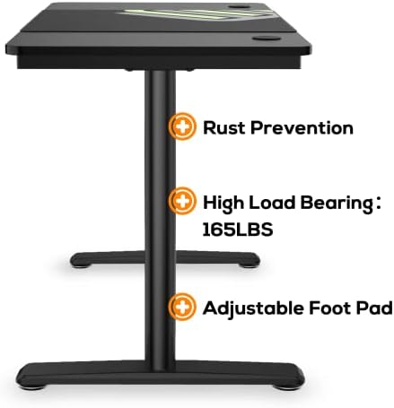✔ Larger Desktop & Ample Space—— The gaming desk measures 47″(L) x 24″(W) x 30″(H). Allows this computer desk to support 2 monitors, screens, printer, plants etc. The 30-inch-high large legroom underneath, provide plenty of space to stretch your legs freely or storing file cabinet.