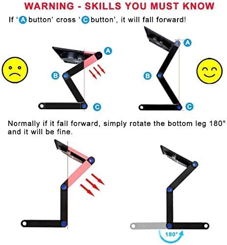 No assembly required!Adjustable Legs Makes Carrying Easy and Holds Your Computer Firm and Steady.Rotate 360 Degrees and Lock in Place at Various Angles.