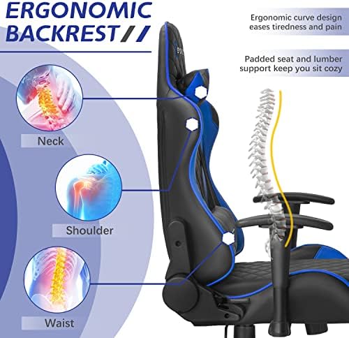 Comfort Improvement: This gaming chair seating and back diamond-shaped cross pattern design strengthens the cushion’s resistance to pressure and increases the load-bearing capacity, also increase the comfortable feeling when seating.