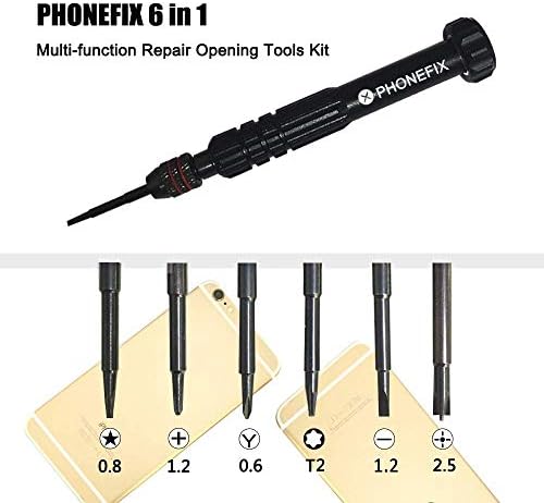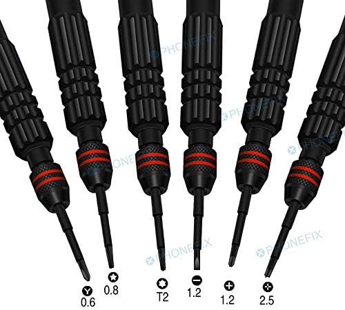 Bits included: 1.2mm (+) / 0.6mm(Y) / 2.5mm (specified Phillips) / 0.8mm (★) / T2 Torx / 1.5mm(-)