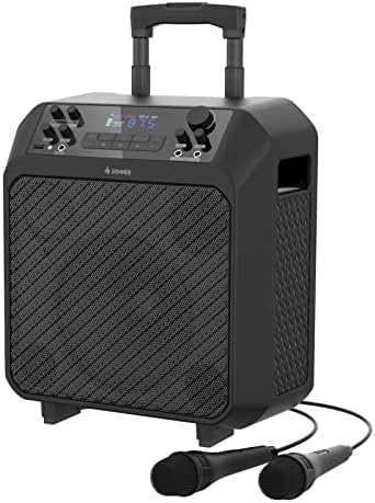 🎶【Super Portable & Exquisite Accessories】There are a sturdy durable lever and wheels on DKM-100 pa system, plus the stylish and compact body, which allows you to easily take it outdoors. And 2 wired microphones help you start your outdoor karaoke party anytime, anywhere!