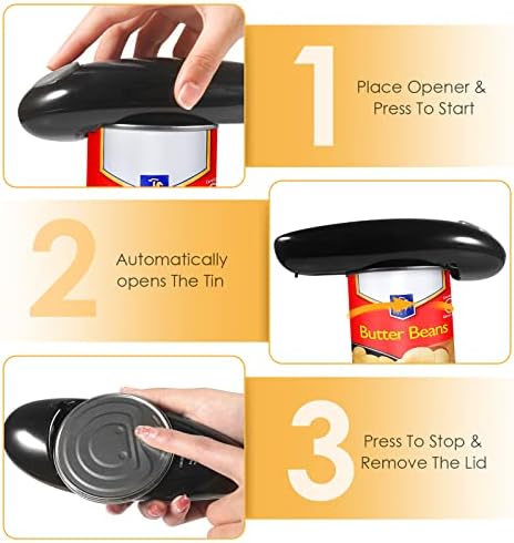 📣Easy to Use – Opens your cans fully automatically at the touch of a button, the lid is held simultaneously with a magnet to avoid a mess.