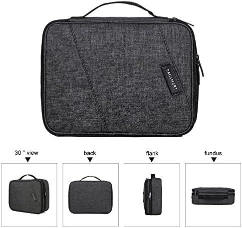 Spacious – 2 separate sections, upper compartment to organize small items like cables, USB, SD cards, chargers, lower partition to store larger ones, like bulkier wires, power supplies, adapters, external hard drives, 10.5″ tablet or kindle and other travel accessories