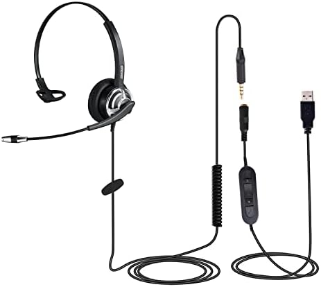 3.5MM &USB HEADSET(2 in 1): this USB computer headset comes with 3.5mm jack for cell phones, mobiles, smart phones and tablets and laptops and a USB adapter cord as a computer headset w noise cancelling mic for PC computers. It works with ISO,Android cellphones and Windows 2000/7/8/10/XP/Vista, Mac iOS and leading UC Platforms, Softphone. Ideal for Skype Chat,office, telemarketing Business, Call Center, Conference calls, Dictation, Dragon speak, Online courses, Webinar presentations and more.