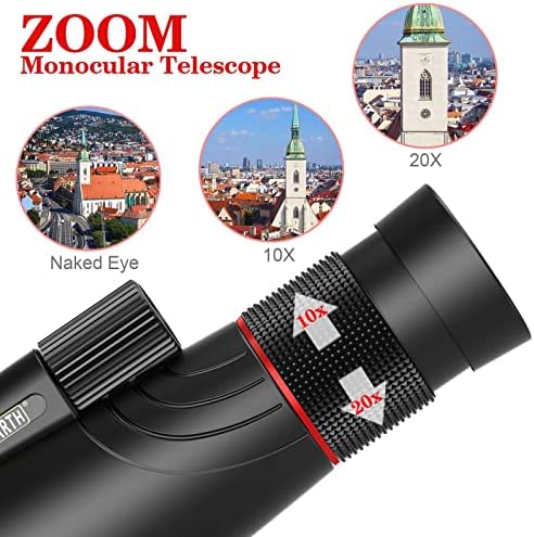 Portable Zoom Monocular – Emarth monocular features a powerful zoom magnification range that adjustable 10x to 20x magnification, use low magnification if you need to see a larger view and handle it steady, zoom in to high magnification when you need to see something longer distance and also want a specific picture