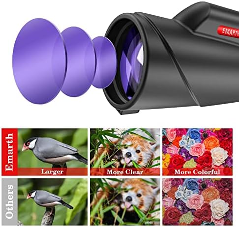 Advanced Configuration – With the BAK-4 crystal prism and FMC(full multi-coated) 50mm objective lens, Emarth monocular delivers brighter, clearer image, the highlight transmission will reach up to 99.8 percent of light reflection allowing for crisp and clear picture as using the Porro system