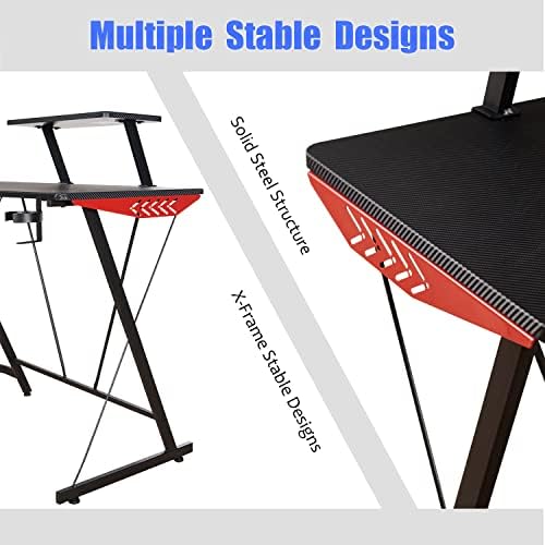 ★ L shaped design provides larger space for gaming.More spacious than most other gaming desks.