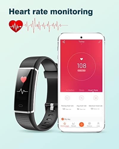 【Heart Rate & Sleep Monitor】Adopted the latest heart rate sensor to measure your heart rate whenever and wherever you like. The fitness tracker can automatically track how well you sleep, and get the sleep data through the night in the App “Veryfitpro”, which helps you make a reasonable adjustment to your lifestyle.