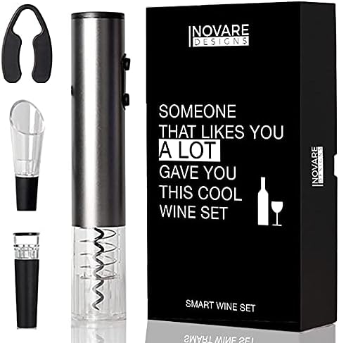 🍷🎁🥳【Wine Enthusiast that you wish to please】 For a special friend, father, mother, brother, sister, cousin, boss, colleague, this Premium Wine Set was created to make a remarkable impression. A positive impression they will remember everytime they use your gift with all the accessories they need to relax and enjoy your wine. Included: Cordless Electric Wine Opener, Foil Cutter, Vacuum stopper, aerator pourer.