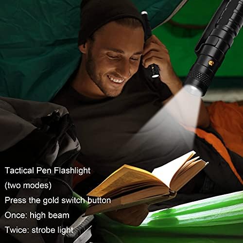 【12-in-1 Multi-Function Pen】 Compatible with ballpoint pen, LED flashlight (high beam and strobe mode), glass breaker, 4-in-1 tool, screwdriver, pen clip, screen touch cap. It is not only a multi-function business pen for daily use, but also an outdoor safety protection tool.