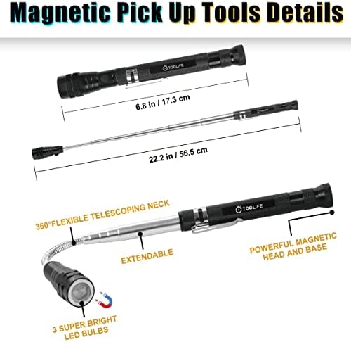 Useful Gadgets for Home: with strong magnets on both ends, this magnet pickup tool , brighten dark areas with the built in LED, can extend fairly far to 22.5inch to help reach difficult spots. Easily help you find and pick up the needles, pins, nuts, bolts or the other small dropped items. Definitely makes a great addition to your toolbox!