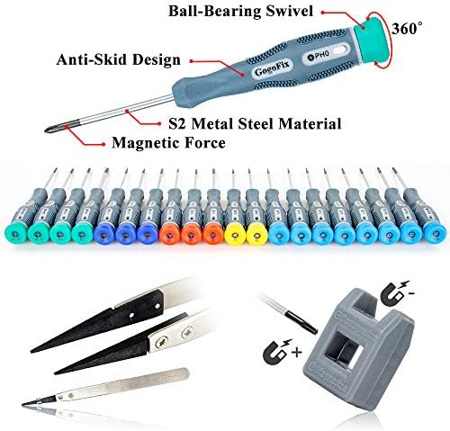 GogoFix Precision 20 Pieces Screwdriver with Tool Kits Compatible with Electronics, Computer, Laptop, Phone, Pad, Gaming Console, Camera… Repair and Maintenance